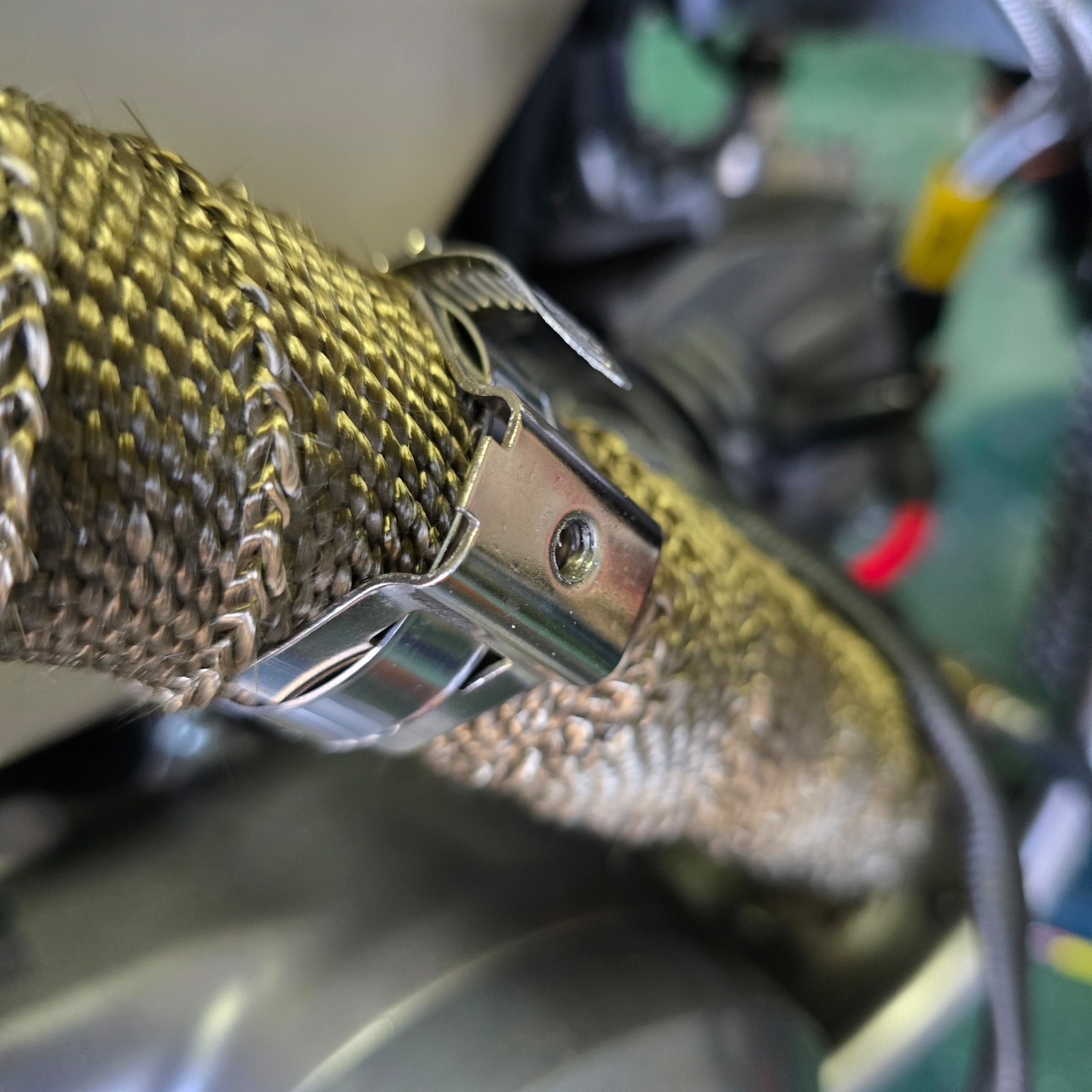 付属バンド金具で固定するためマフラーやパイプなどを脱着することなく取付けが可能です。