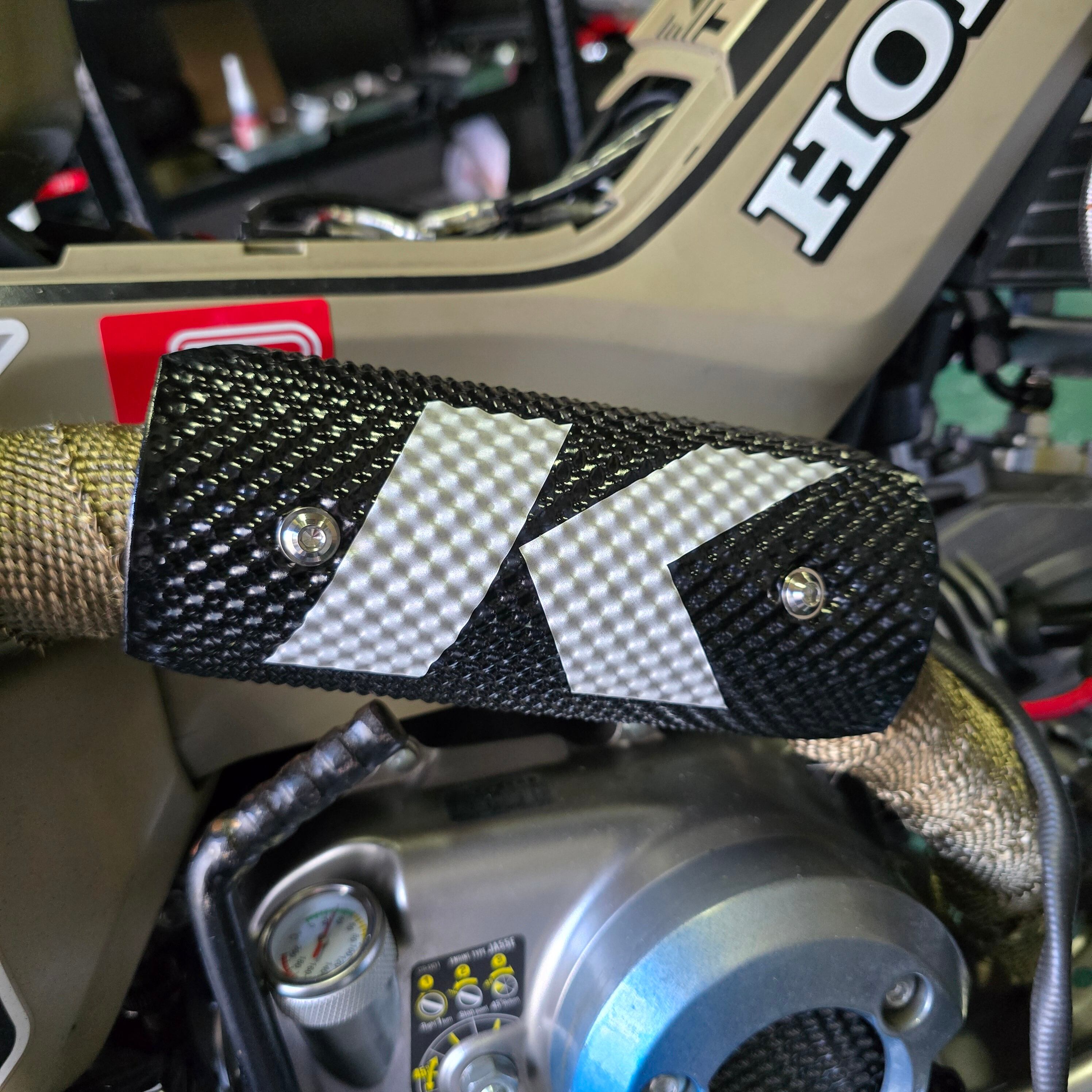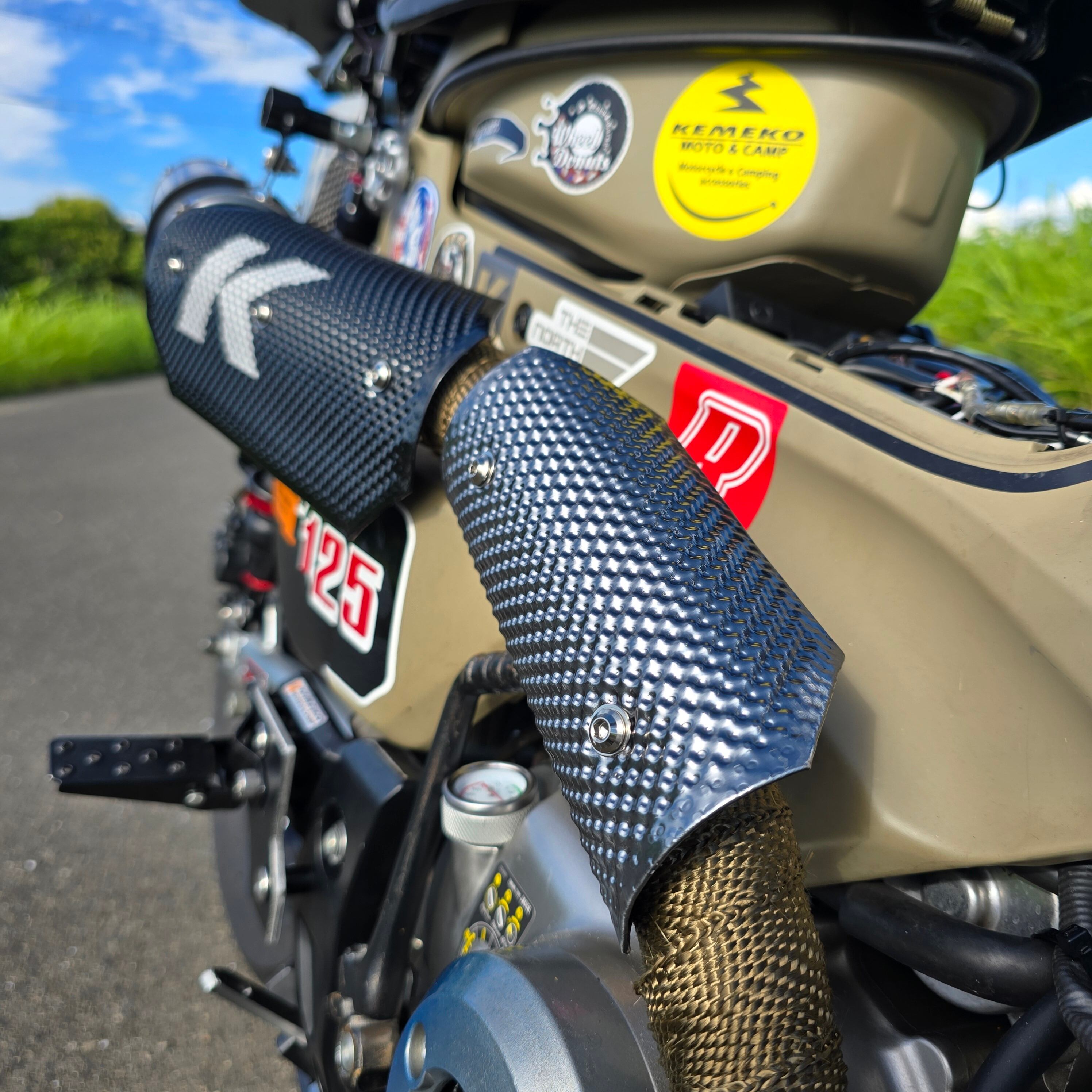 特殊成型の凹凸で効率良く分散放熱を促し、エキパイなどの熱によるヤケドや衣類へのダメージを防止します。