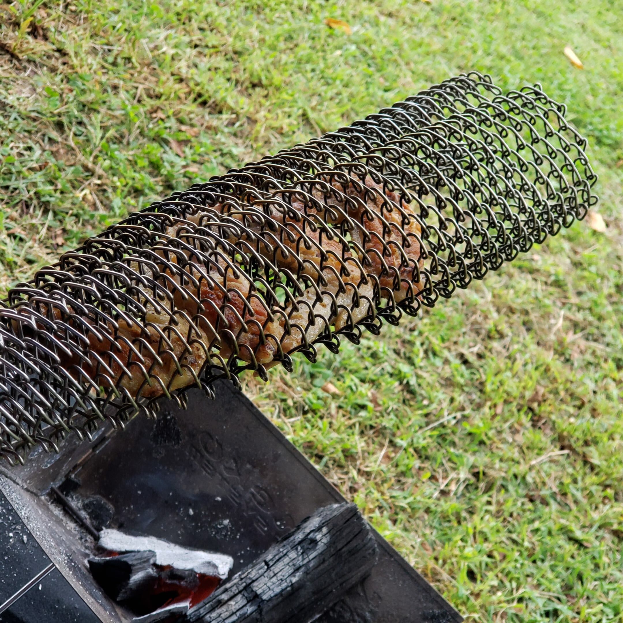 手持ちのグリルや焚火台に合わせて伸縮させることも出来るので重い焼網をくるりんぱにすることで荷物の軽量化にも一役。